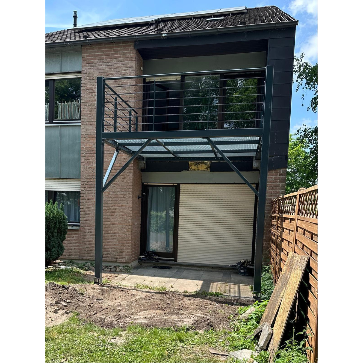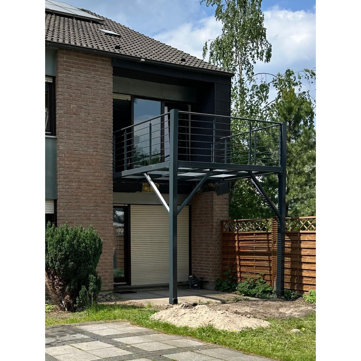 Leistungsumfang Dieser maßgeschneiderte Stahlbalkon wurde speziell für ein Wohngebäude entwickelt, um zusätzlichen Wohnraum im Freien zu schaffen. Die stabile Stahlkonstruktion bietet eine langlebige und sichere Lösung für den Außenbereich.