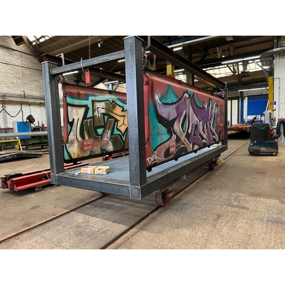 Leistungsumfang Dieses speziell konzipierte Schienenfahrzeug dient als Lackiervorrichtung und wurde für den sicheren und effizienten Einsatz in der Produktion entwickelt. Es bietet eine stabile Arbeitsplattform und ermöglicht eine kontrollierte Bewegung der Bauteile während des Lackierprozesses.