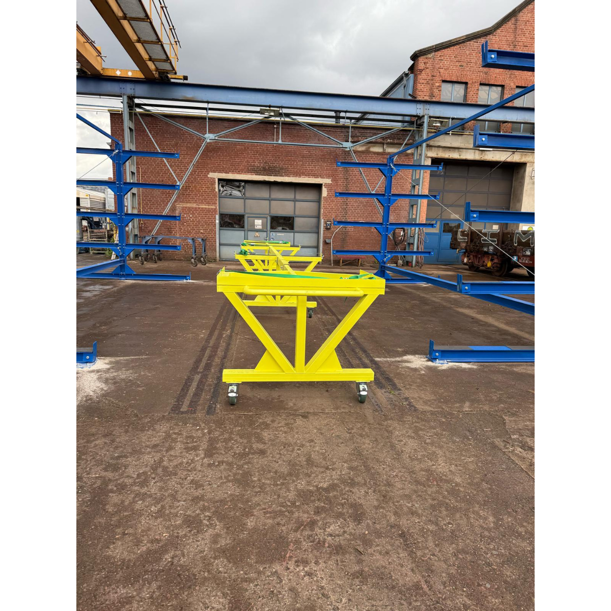 Leistungsumfang Diese leuchtend gelben Transportwagen wurden für einen variablen und einfachen Materialtransport auf dem Werksgelände konzipiert. Dank ihrer verstellbaren Längeneinheit sind sie ideal für unterschiedlich große Bauteile einsetzbar. Die Kombination aus Leichtlaufrollen und robuster Konstruktion ermöglicht sowohl Flexibilität als auch Sicherheit im täglichen Einsatz.