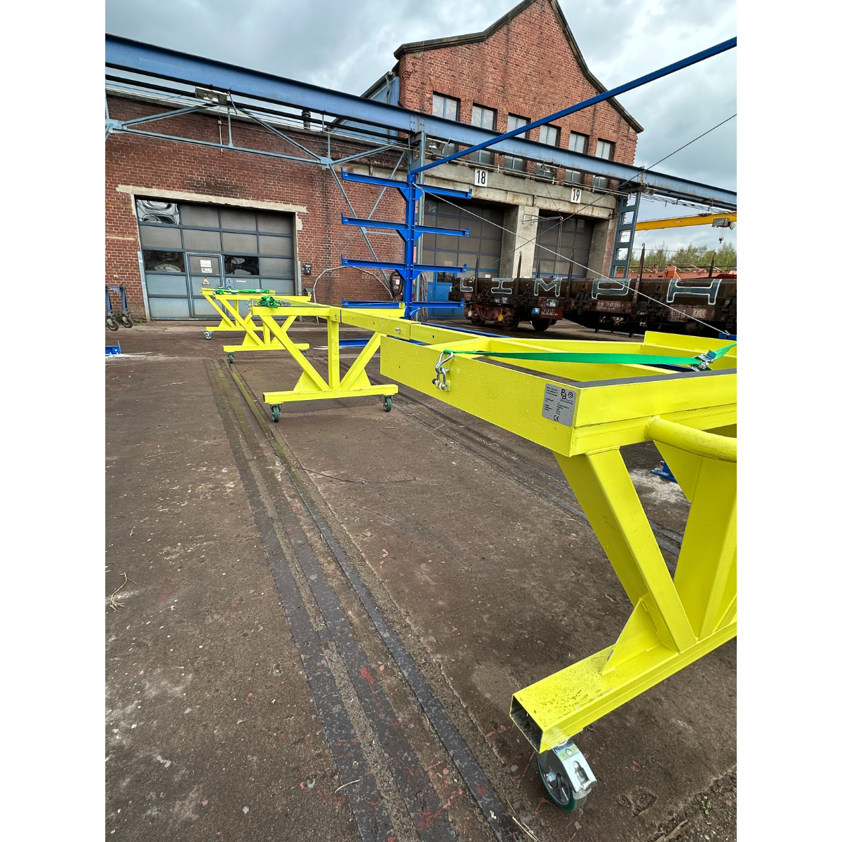 Leistungsumfang Diese maßgefertigten Gleisjoche wurden speziell entwickelt, um die Produktionssicherheit, Effizienz und Ergonomie in der Arbeitsumgebung zu verbessern. Durch die stabile Konstruktion und durchdachte Bauweise werden schwere Lasten sicher gelagert und Bewegungen optimiert.